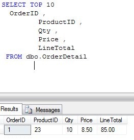 INSERT dbo.OrderDetail ( OrderID , ProductID , Qty , Price , LineTotal ) VALUES ( 1 , -- OrderID - int 23 , -- ProductID - int 10 , -- Qty - int 8.50 , -- Price - numeric 85.00 -- LineTotal - numeric )