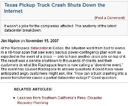 It’s hurricane season on the East Coast of the US right now, and after Hurricane Irene, I’m sure there are more than a few IT workers that are worried about their disaster recovery (DR) plans. Irene didn’t cause much damage, but it was a reminder that there are situations which are completely out of our control, but could easily end up causing us problems with our infrastructure.