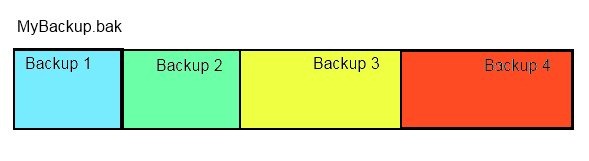 Our one file, MyBackup.bak, contains 4 full backup files. This file is larger than it needs to be, and also it poses a risk. If I lose this file, I don’t lose one backup, but I lose 4.
