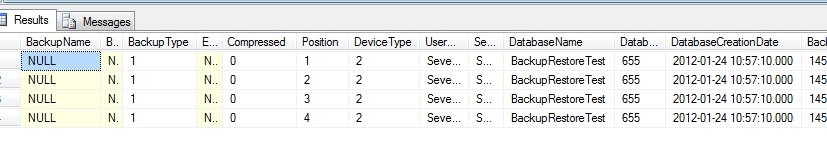 RESTORE HEADERONLY FROM DISK = 'MyBackup.bak'