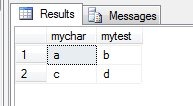 -- mistake noticed SELECT MyChar FROM dbo.mytable GO
