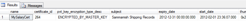 select name , certificate_id , pvt_key_encryption_type_desc , subject , expiry_date , start_date , thumbprint , pvt_key_last_backup_date from sys.certificates