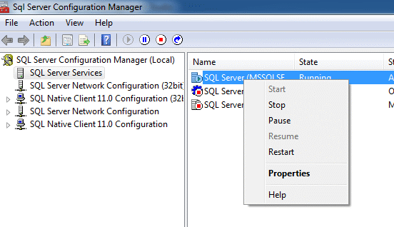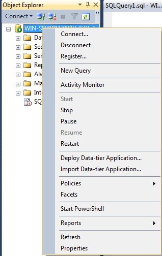 Once this is done, you need to switch to Management Studio and then right clicking the instance and selecting properties.