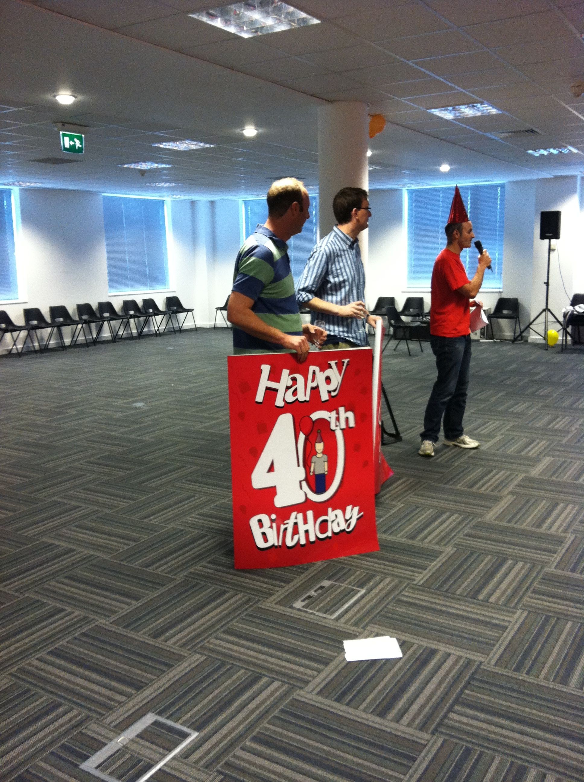 The two founders of Red Gate, our co-CEOs, Neil Davidson and Simon Galbraith, both were turning 40 within a few weeks of each other. A few people in the company had organized a celebration with sweets