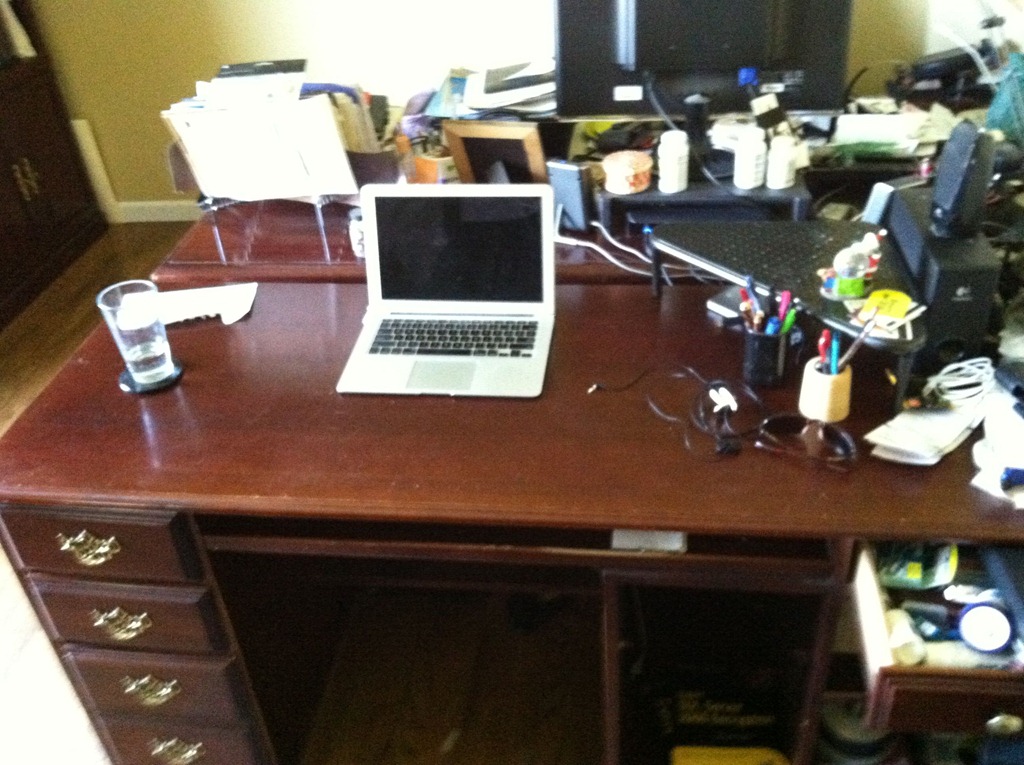 - Desk space – I’m used to having space for a bottle of water and a coffee cup, plus my phone, a plate if I eat, etc. I need to consider that as I move to a more permanent setting.