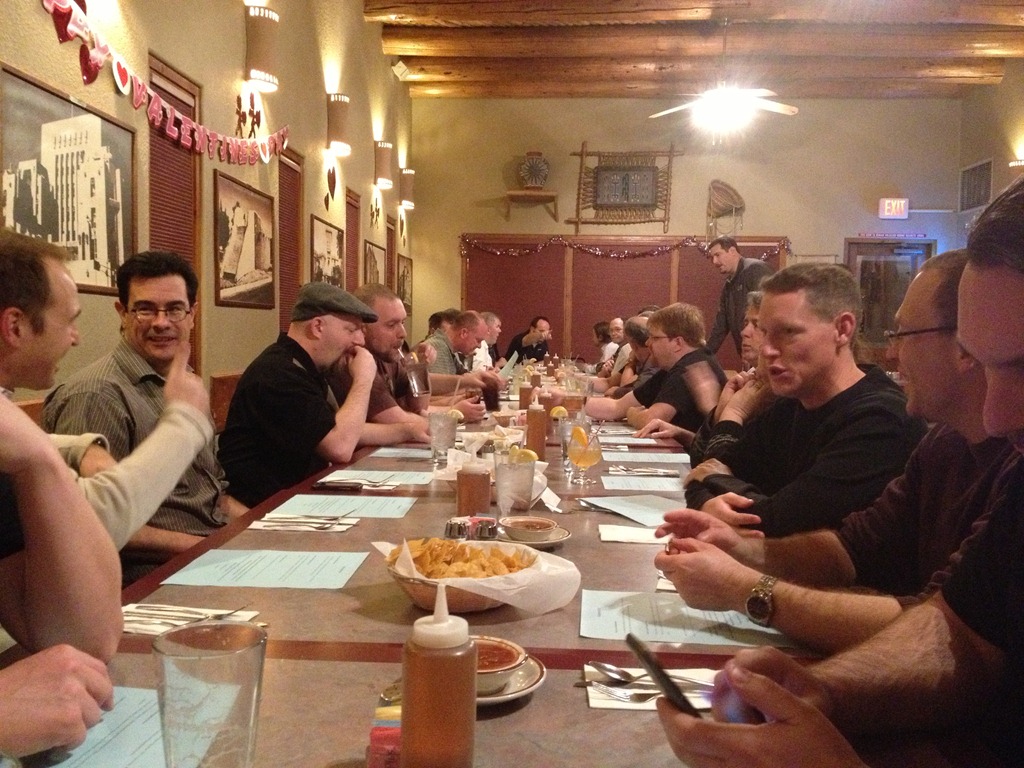 Friday night we drove down to Albuquerque, arriving around 5:30 or so. After a quick stop at our hotel, we headed over to the speaker dinner. It was held at a very popular local restaurant, and we had a large table reserved.