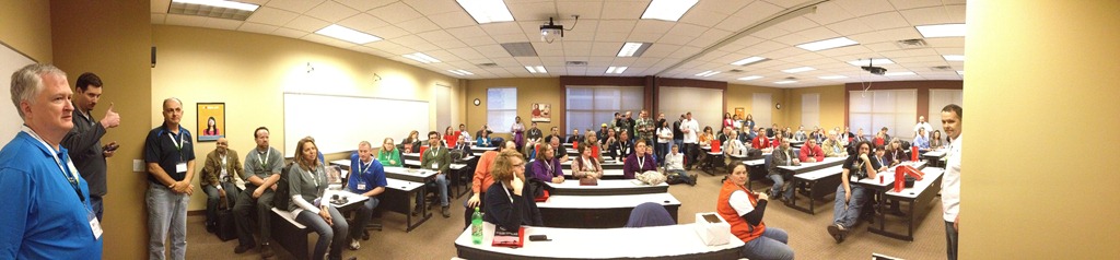 The end of the day had everyone gathered in one large room for lots of thanks, applause, and prizes. I got a panorama shot of the closing below.