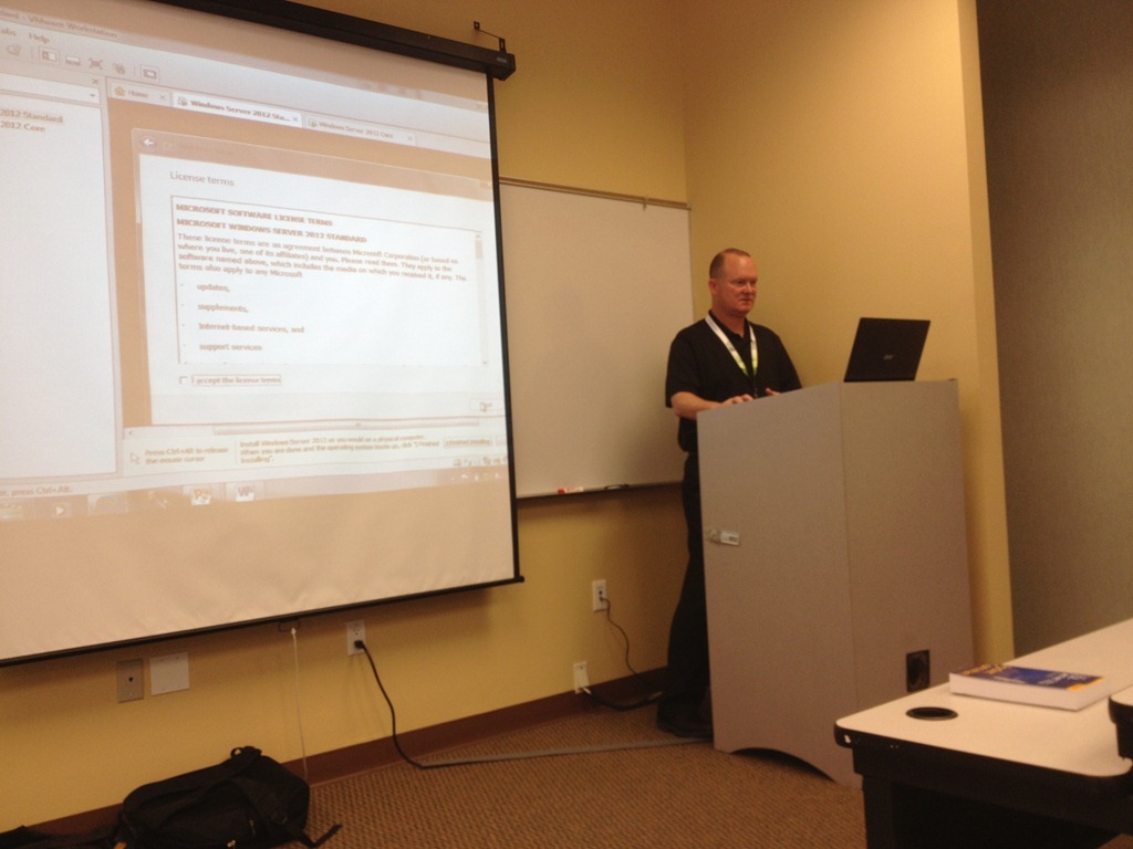 From there Todd proceeded to install Windows Server 2012 twice (one GUI, one Core) and set them up, snapshotting them installs 5 times for the other VMs. Over the next 30 minutes he rebuilt his lap, although he stopped short of installing SQL Server due to time.