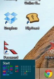 Most of the Start Screen stuff isn’t remotely bothersome to me. I pop it up, type an app (or a few letters) and select it. I learned that the tiles aren’t easy to distinguish for me. I’ve got a bunch of stuff up there, and I’ve moved stuff to the left side, but the colors make it hard for me to tell which app is where.