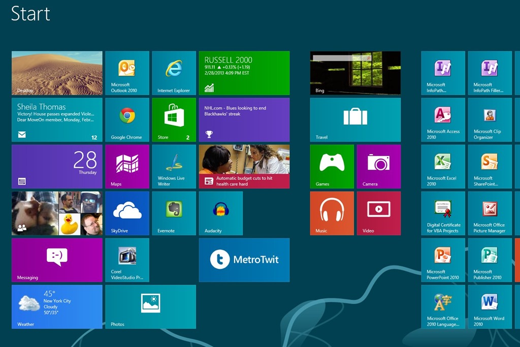 Right now I love the performance and day to day work on Windows 8. It’s faster and more stable than Win 7 for me. The start screen isn’t in my way and works quicker if I’m typing. I worry about the way this will work when most of my apps are “full screen” styles and the task bar will be useless, but that isn’t a problem for now.