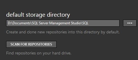 My next step was to pick a place on my local drive where I could store my Git data. Since I do a lot from Management Studio, and use quite a few VMs, I wanted a standard location I could use easily and chose a folder under my SSMS installation.