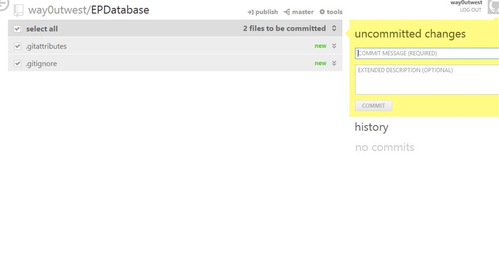 I clicked the “Commit Changes” tab, and could see my three objects listed there as new items to commit.