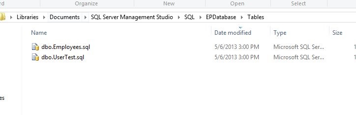 Only a few folders have objects, and those contain the .sql files for those objects.