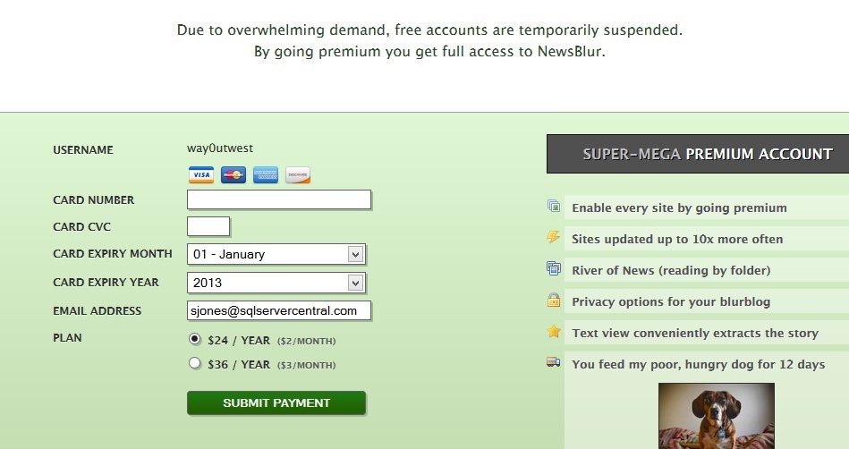 Someone suggested Newsblur to me, and I went to their home page. Like many sites, it asks you to sign up, so I decided to give it a try.