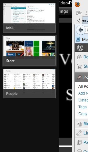 I actually was running the Mail app in Windows a minute ago, however it’s not on my taskbar. I have to do one of a few things to find it. I can put my mouse in the upper left corner, and I’ll see it as thumbnail.