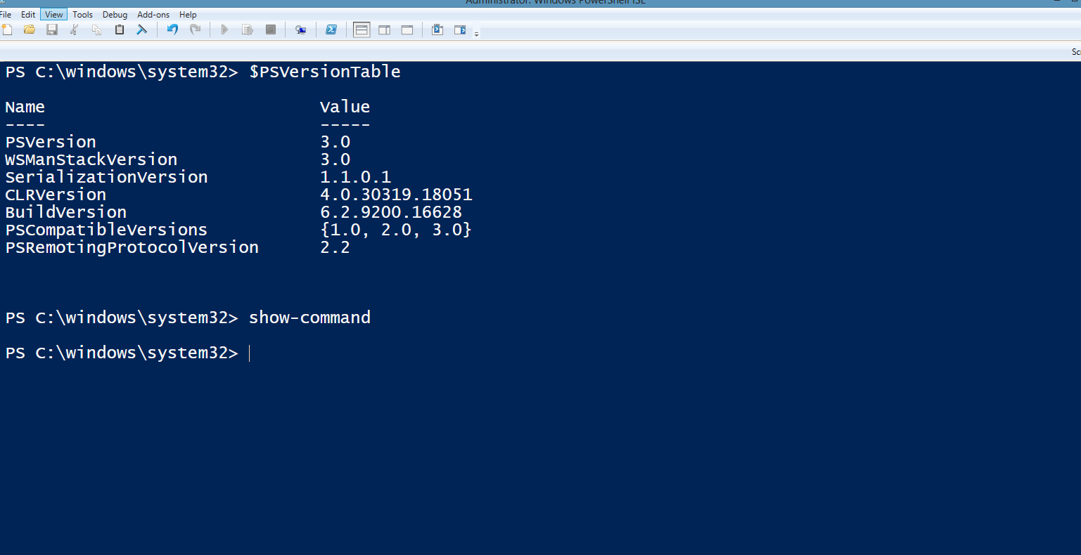 There’s no ISE available. This is different on different machines for me. However if I finish “Powershell” and add a space “i”, I get the ISE. Not a bid deal, but an interesting item for me.