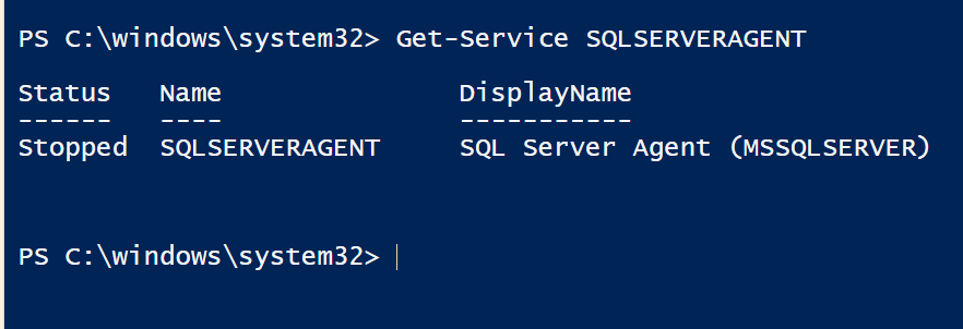 I typed Get-s, hit tab to cycle through choices, and then entered “SQ” and tab’ed to get SQLAgent. That gave me the status of the service on my laptop.