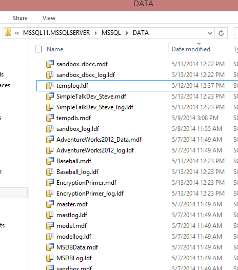 - The database name was used as the mdf file, i.e. the Baseball database has Baseball.mdf as the file.