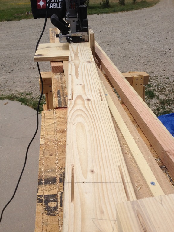 I worked my way down each board, and then back up, cutting the slots. It actually went fairly quickly, though with 8 boards, and two slots every foot, that’s a lot of cutting.