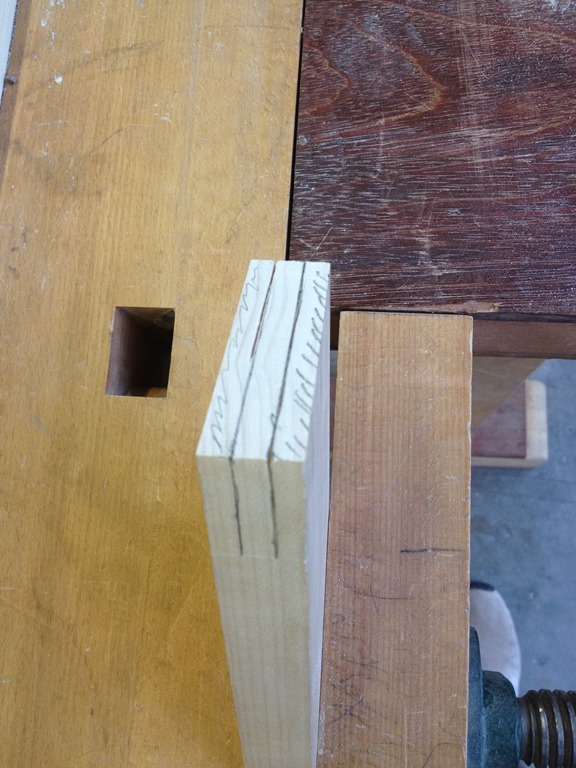 I started the next tenon, but ran out of time. I think I have three sides cut, though it feels a bit thin. The router plane is fighting me.