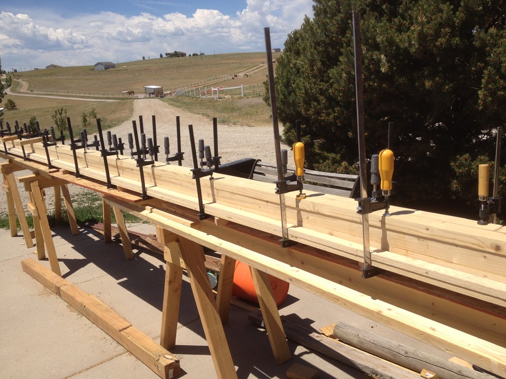 The clamps went back on and with an afternoon commitment, I was in a hurry. This time I wished I had bought 10 more clamps Tuesday because these boards were more twisted. Not a ton, but more. As I looked later, a few spots were high and I am debating about mixing more glue and filling in spots.