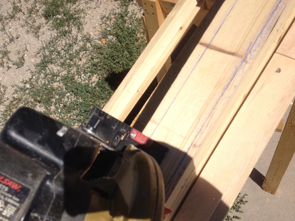The plan doesn’t talk about this part, and the video says that a 3/4” line is what was removed, but with the top being 3” wide, I didn’t want to remove 3/4” from each side. I’d like to have 2” when I’m done, so I started with 1/2” at the top, moving to 3/4” at the end of the tapered part. The bottom 49” is straight, so I marked that and then chalked my lines.