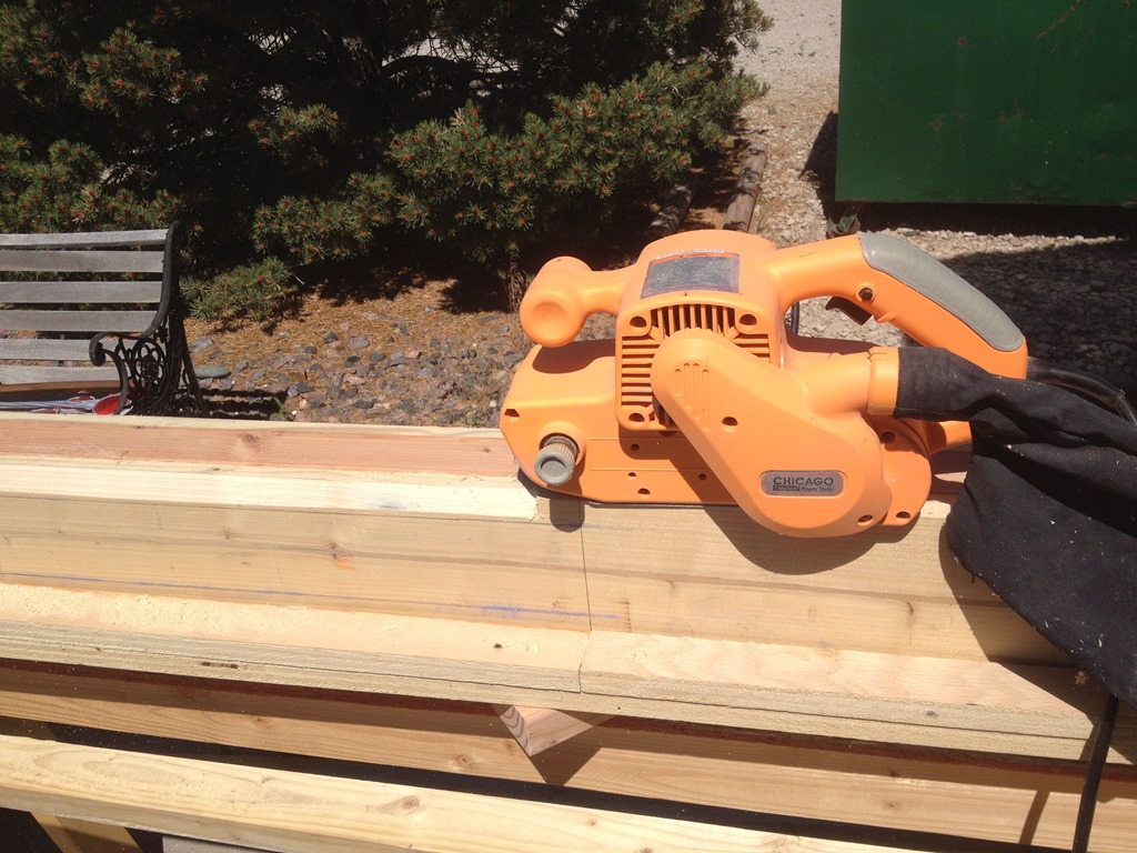 As I completed each side, I also did some sanding, trying to smooth out the pole. I had mixed luck with my Harbor Freight, cheap belt sander. I’m considering buying another one tomorrow.