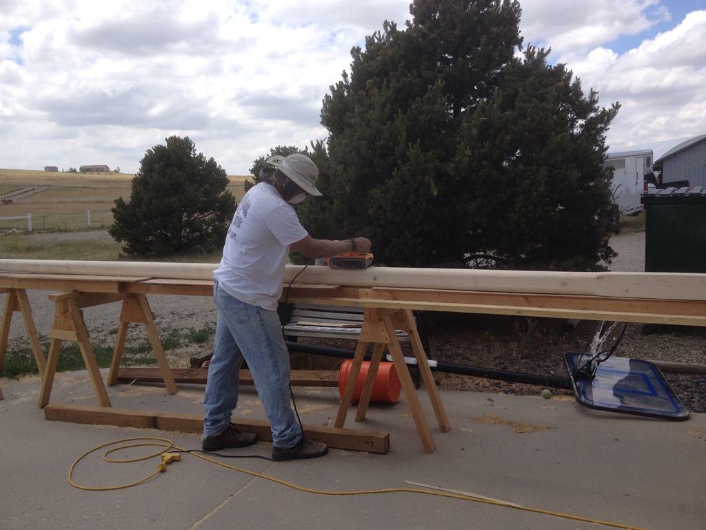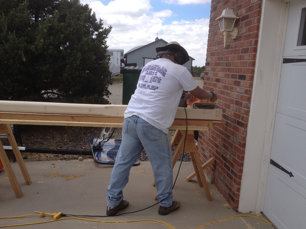 Using some new 36 grit sandpaper, I first hit a few rough spots where one of the 3 boards making up a side was taller than others. This went quickly, giving me a relatively smooth surface.