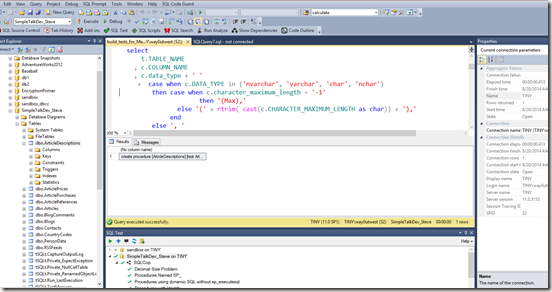I will go even further by reducing the tool bars to one row. Presenters should make an effort to learn how to access via shortcuts 50% of what is on the first and 2nd tool bars on your examples above. Show and hide the result pane by using CTRL+R or configure your SSMS to do so in case it doesn’t work. Increase the font on the code window by using CTRL+Scroll mouse wheel.