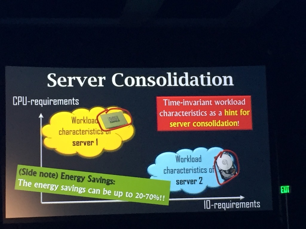 There is a good slide, showing the ways you might look at consolidation. I’ve often looked at the timing of workloads, but understanding IO v CPU v memory (for the buffer pool), might be good.