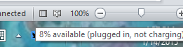 I had taken my laptop downstairs and noticed the battery was low. I grabbed the adapter, plugged it in and didn’t think about it. However when I disconnected the power, I got the “low battery” message again. I was surprised as the machine had been plugged in for a few hours. When I hovered over the battery icon, I saw the tip above.