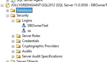 Here’s where it’s a little interesting. I disconnected Object Explorer and connected back as DBOwnerTest. I see this: