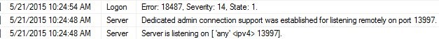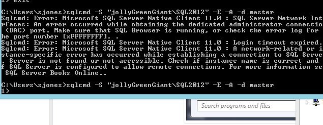 - Errors when Trying to Use DAC Connection in SQL Server – http://www.sqldbpros.com/2013/10/error-when-trying-to-use-dac-connection-in-sql-server/