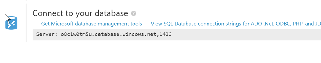 Scrolling down, you might see the important item that you care about. How to connect. The server is listed, and if you’re using an app with ADO, PHP, OLEDB, etc, you can click the link and get the strings you will use.