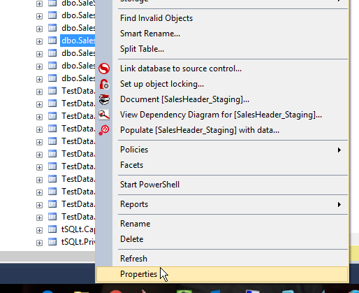 Once I click Properties, I get a dialog with a lot of items on the left. The bottom one is for Extended Properties, with a simple add/edit/delete grid. Here I can see the property(ies) I’ve added.