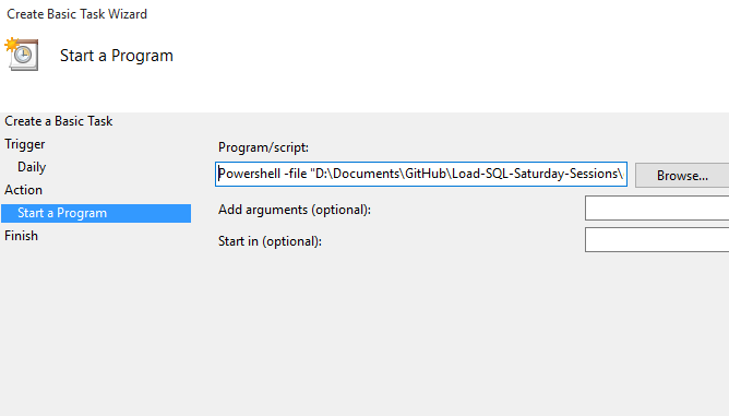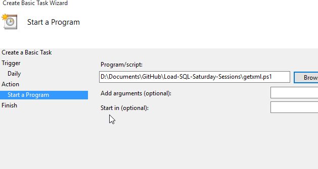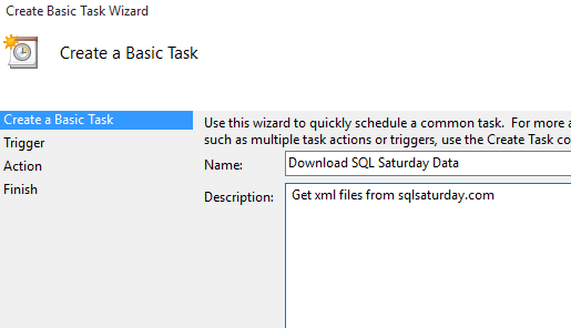 One of the things I needed to do with my SQL Saturday download process was run this automatically. I don’t want to remember to do this, so I decided to set this up on a schedule.