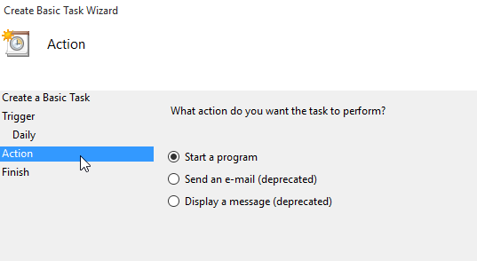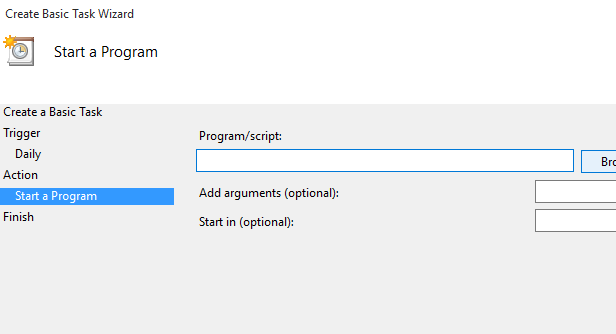 I want to run a program, so I choose that in the next step.