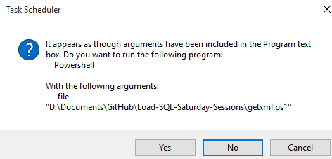 There’s a summary after this, but I say OK to that, and then run the script from the Task Scheduler. It works perfectly, so I stop there.