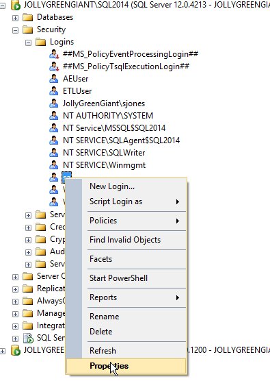 Connect to SSMS as a sysadmin. You can check this for your login. Then expand the Security folder and the Logins folder. Right click the “sa” account and choose properties.