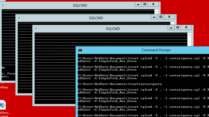 If each query is set to run multiple times, I’ll have a simple load generated. In my case, I’ll run the .CMD file from the command line, but I could double click it. When I do, I see this: