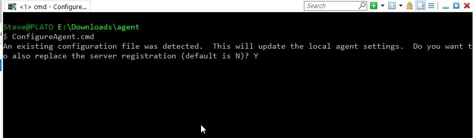 What I first want to do is configure the agent, so I’ll enter ConfigureAgent from a command prompt. Note, I need to do this as an administrator level command prompt.