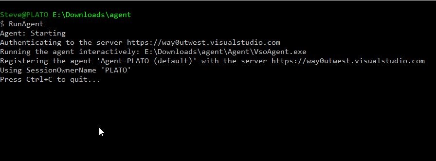 All I have left to do is RunAgent.cmd and I have an agent running locally that takes instructions from VSTS.