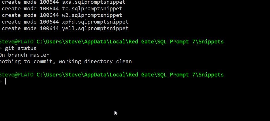 Last year I published an article on SQLServerCentral from Guarav Vohra on using SQL Prompt with a VCS. I really like the article, and had been meaning to get my own SQL Prompt Snippet library into a repo, but kept putting it off.