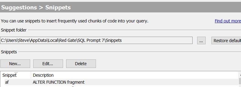 If you don’t have a SQL Prompt library, download an eval and give it a try. It’s a fantastic tool and worth your boss buying since it will save you time when coding.