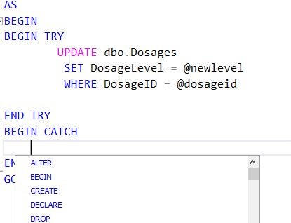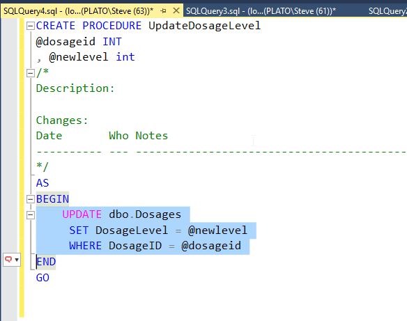 Let’s change our code and include an update statement. For example, suppose as part of a procedure, I’m writing this code: