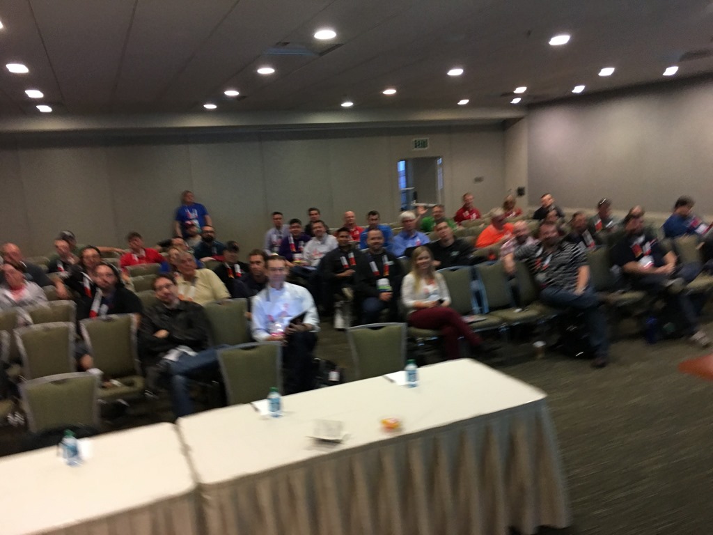 Then it was the annual SQL Saturday organizers meeting. I had a short, 5 minute talk about trying to create slimmer, more affordable events. I indulged myself with a couple snaps from the stage.