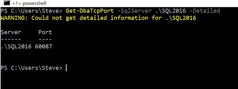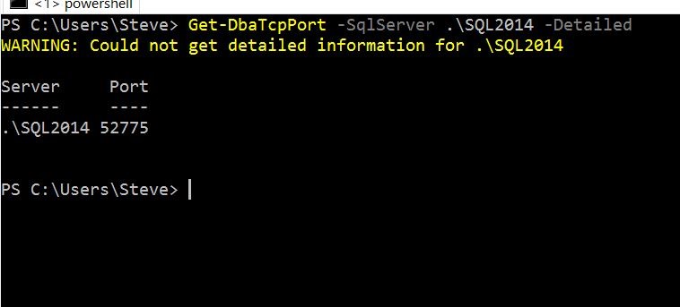 The main thing I can do here is pass in the SqlServer parameter and get a port. Here’s the ports for an instance on this machine: