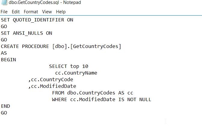 This means the code is valid. However, does this really work? Let’s edit some code and see. I’ll change the code for a procedure. Here’s the original GetCountryCodes.sql.