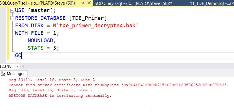 ALTER DATABASE TDE_Primer