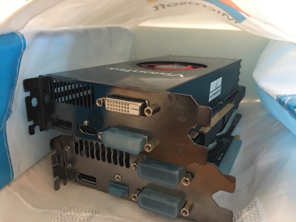 Recently we had lunch and Glenn offered me his old Radeon R9 video card. It was ranked quite a bit higher than the GeForce GT 740 I bought last year. I didn’t need a replacement, but the price was right, and maybe I’d impress my kid a bit with the upgrade.